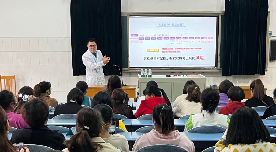 2023年3月30日,漢和醫院兒童青少年近視防控宣講團成員何超醫生親臨成都市新都區清流學校,為學校學生家長和老師開展近視防控專題講座。講座中,何超醫生就本學期學生視力篩查數據結果做了具體分析,讓家長們看到了孩子視力檢測的第一手數據。同時,何醫生結合目前青少年近視發病率較高的趨勢,對近視的成因進行分析并分享了應對策略,強調愛護眼睛、保護視力的重要意義。指導了家長們如何培養孩子正確用眼習慣,也明確了以后需要改進的細節問題,要求家長配合學校督促指導學生居家保護眼睛,在平時學習生活過程中,保持正確用眼姿勢,杜絕沉迷網絡等不良現象,通過家校聯動,確保孩子們都擁有一雙明亮的眼睛。